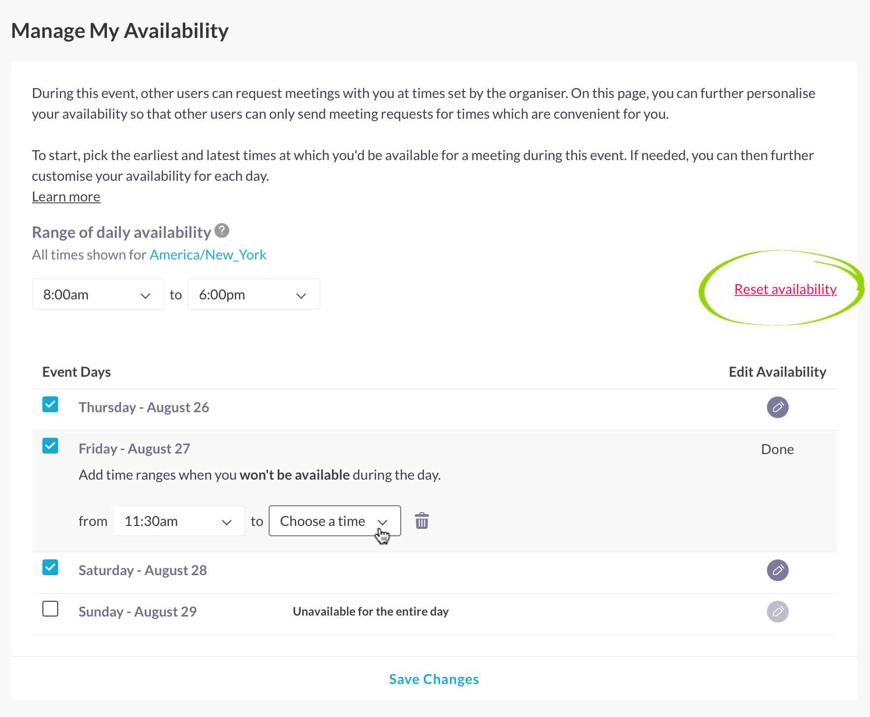 During the live Virtual Event date range, you can still access Matchmaking from your user profile or also from the top navigation menu.