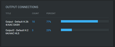 Output ConnectionsThe breakdown of attendees connected via DASH or HLS streams. Chrome, Firefox, Edge, Safari and Android devices connect via DASH. IE11 and iOS devices connect via HLS.
