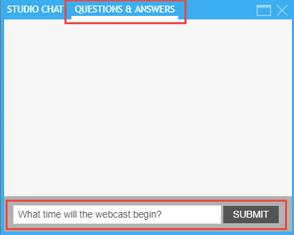 • If enabled, you can ask a question by entering it into the “Ask A Question” or “Q&A” panel. Simply type in your question and then hit the “Submit” button. A brief message will appear, "Question Submitted", alerting you that your question was submitted.