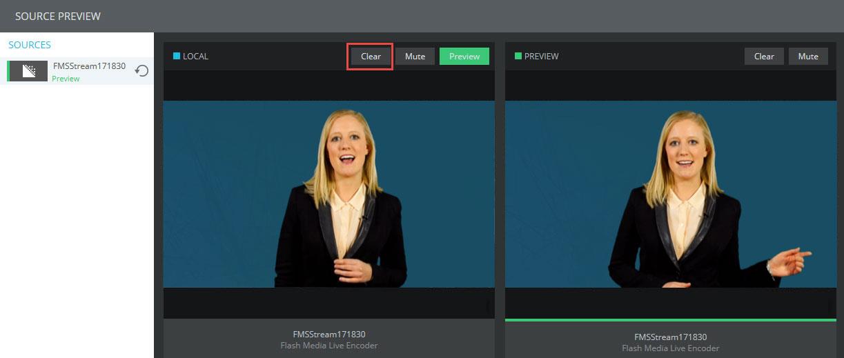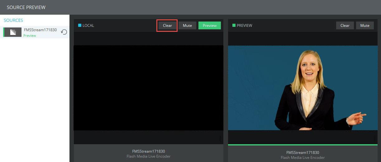 Simply press the clear button in the left “Local” window and you will be able to clearly verify the audience experience.