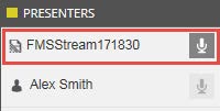 4. Once the stream is connected correctly, it should appear by name in the presenter list inside the console. A microphone icon should also light up.