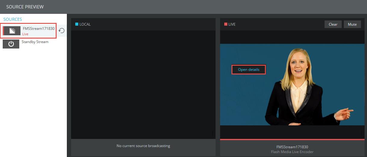12. First, open up the source preview window in the top left corner of the console. Once opened click on the stream name in the left column under SOURCES. The live stream (with a slight delay) will appear in the far right window. Right click on the stream in the right window and select open details.