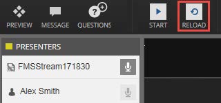 6. Once verified in the presenter list, you can preview video and audio by clicking on the preview button in the top left of the console.