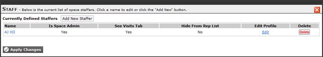 Once you have added your sponsor space staff members and configured their information, click “Apply Changes”.