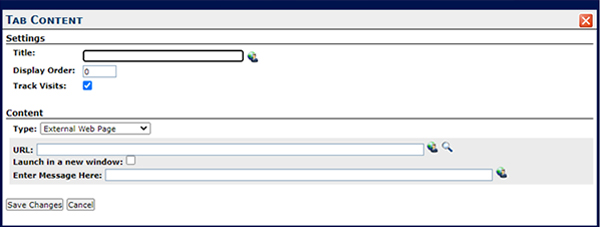 You can link your tab to the documents and links that you uploaded in the Documents/Links step, redirect a tab to an external web page, or create a custom HTML page to be displayed when the user clicks on the tab. The maximum number of content tabs varies depending upon your event. Consult your event host or your primary event contact for more information. The default setting when adding a new content tab is External Web Page.